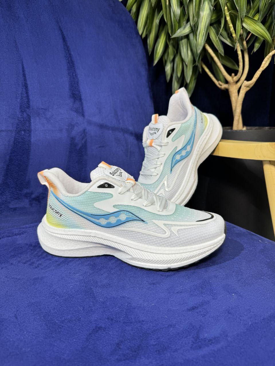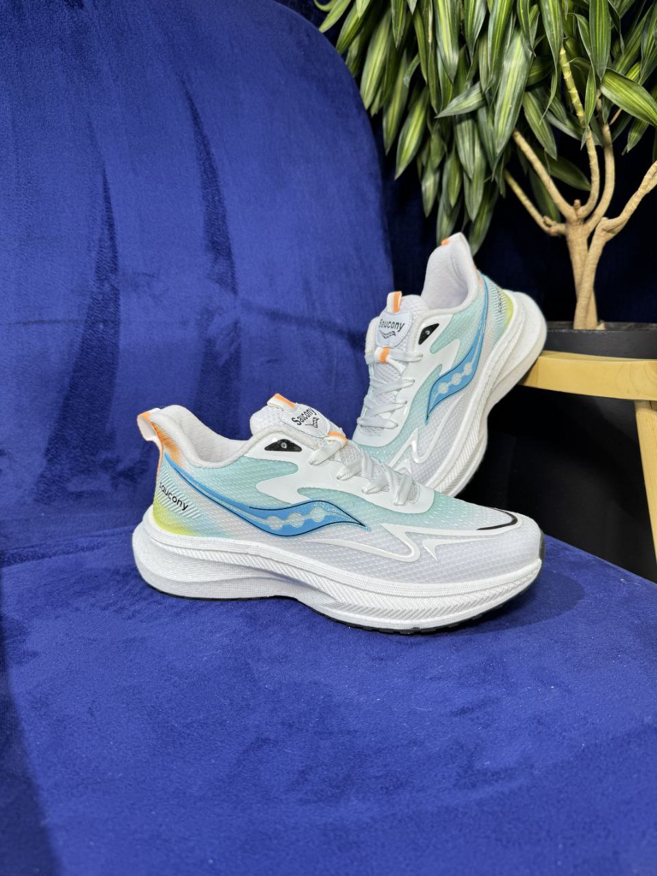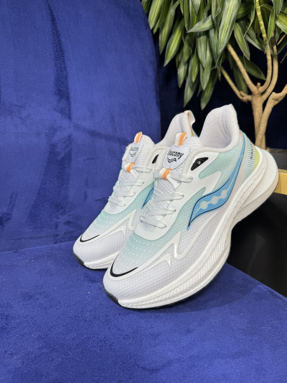 کتانی مردانه ساکونی بامیکو سفید سبز فیروره ایی