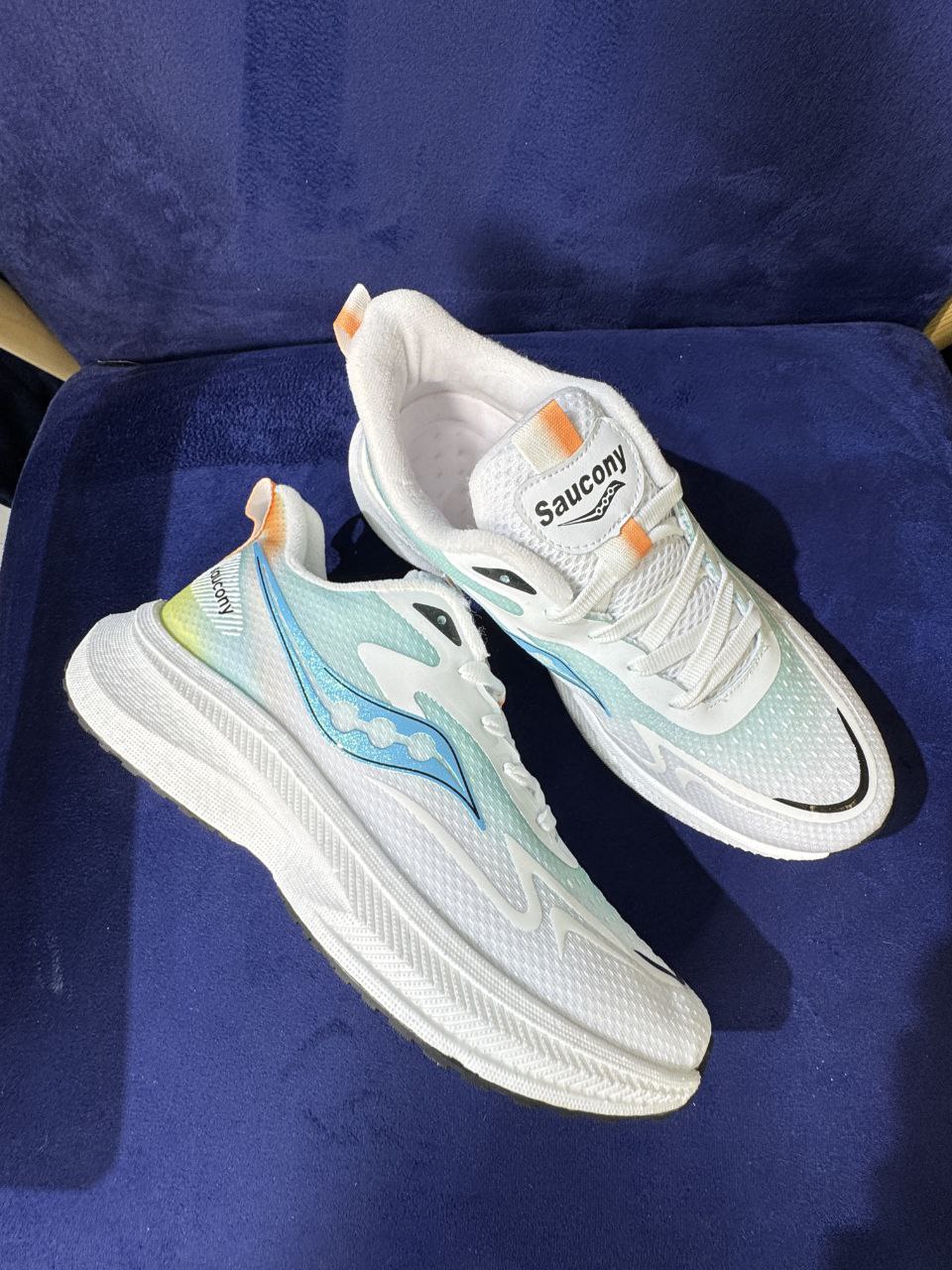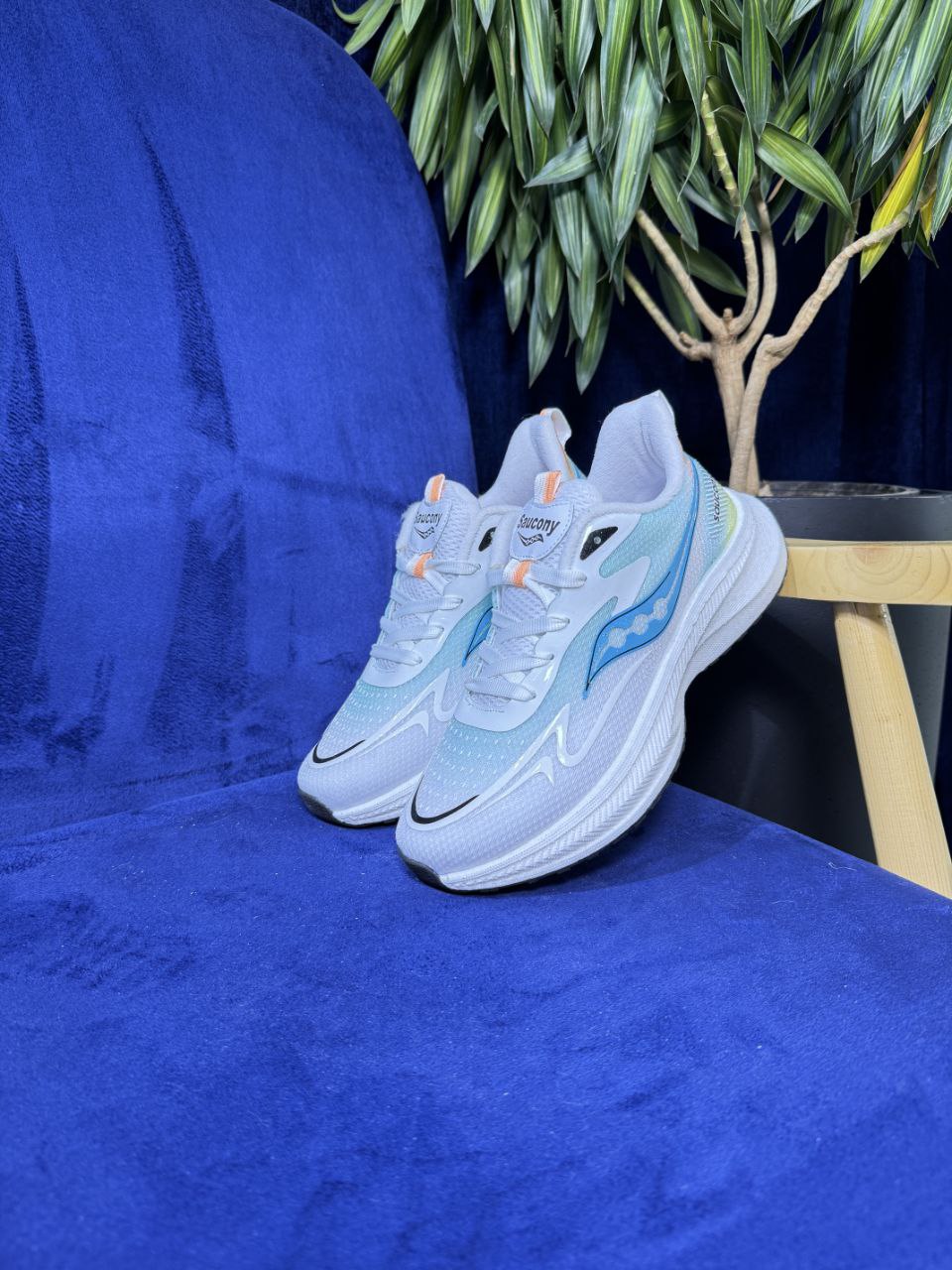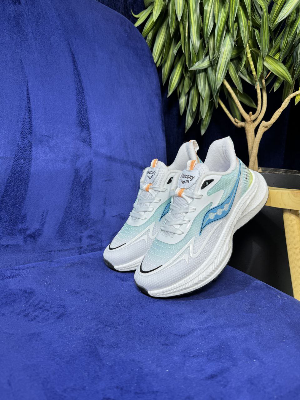کتانی مردانه ساکونی بامیکو سفید سبز فیروره ایی